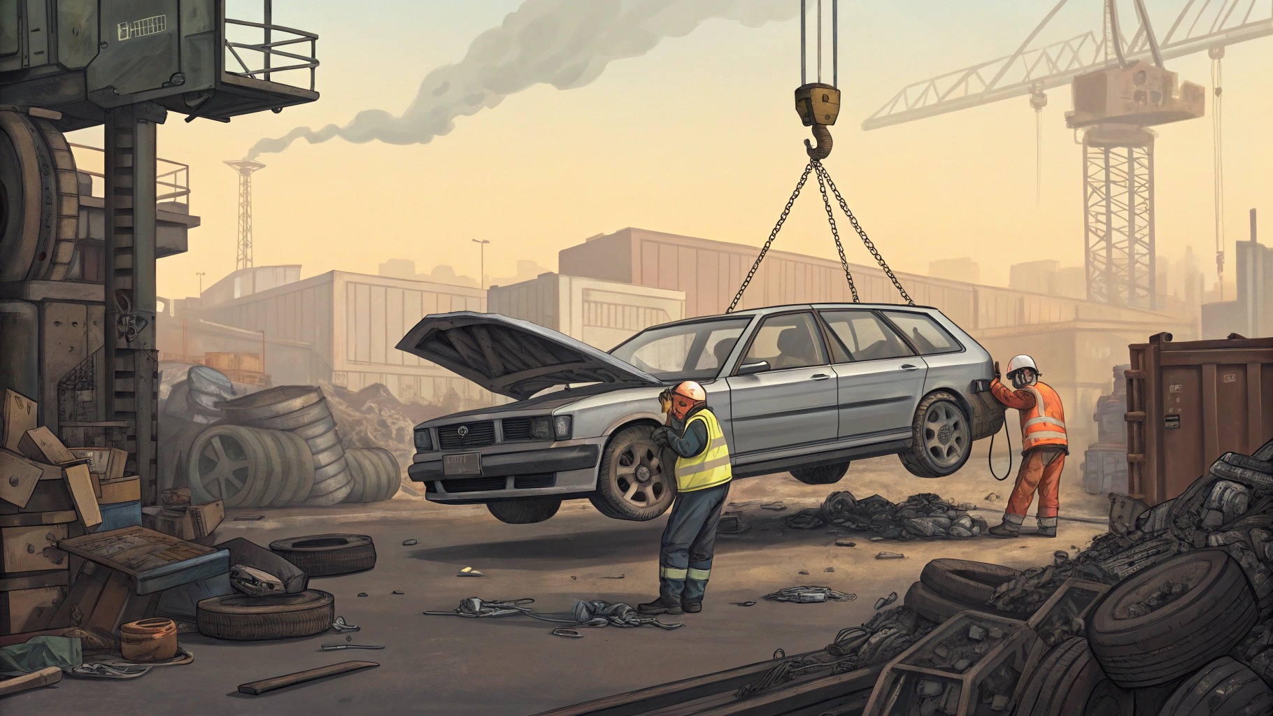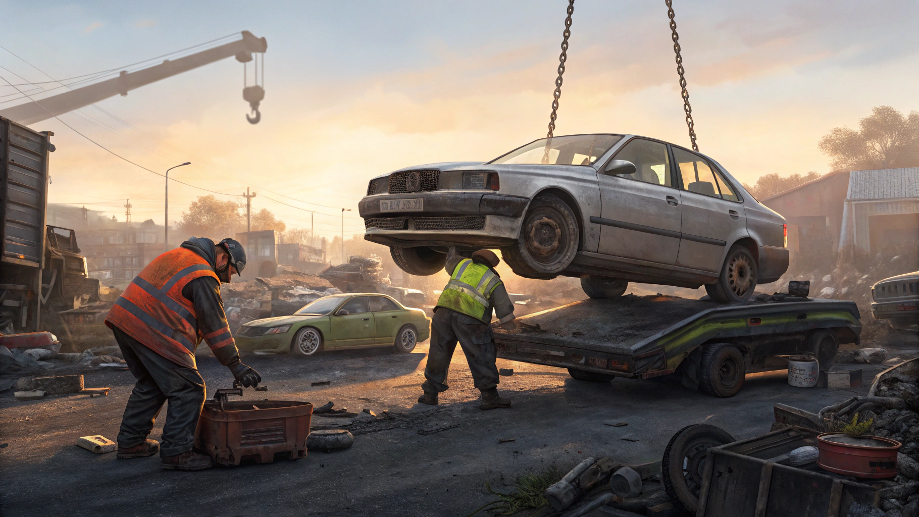 폐차장에 차량이 도착하면 해체 작업이 진행되고, 이후 행정기관을 통해 말소 등록이 이루어집니다.